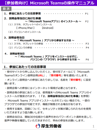 注意事項 | ・受付完了後、受付完了メールにて、「Microsoft Teamsの本件オンライン説明会用URL」、