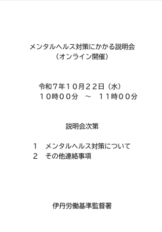 メンタルヘルス対策にかかる説明会を開催します。