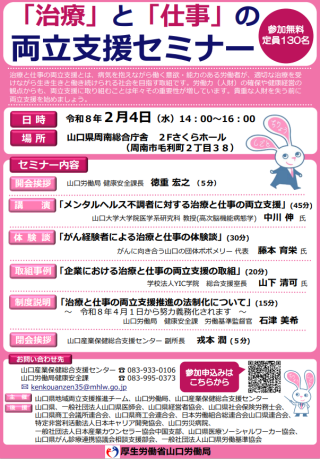 治療と仕事の両立支援に関するセミナーを開催します。どなたでも参加可能です。