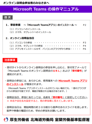 室蘭労働基準監督署管内の事業場で労務管理を担当する皆様へ向けた説明会です。